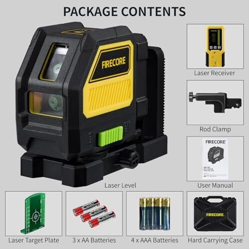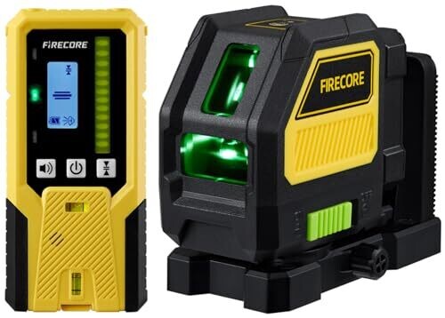 The Firecore Laser Level with Receiver delivers a bright green self-leveling cross line and a compatible laser receiver, all in one kit. Ideal for outdoor construction with a 60-meter range and a durable hard case for easy transport and storage.