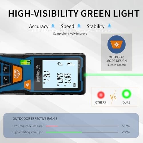 • Greentech Green Laser Distance Meter 393.7Ft — Angle Sensor & Backlit Display