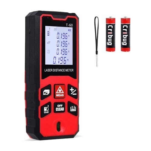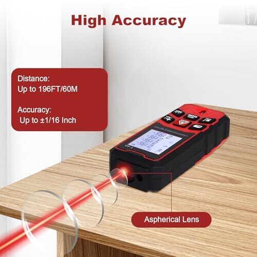 • KUUAUX 196Ft/60M Laser Distance Meter - High Accuracy, Backlit Display