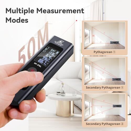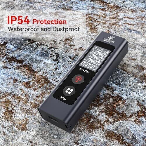- Ranges up to 50 m / 165 ft with clear, high-contrast results and easy unit switching between m, in, and ft.
