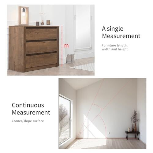 - Built-in electronic angle sensor enhances precision for rooms, layouts, and large spaces like buildings and warehouses.