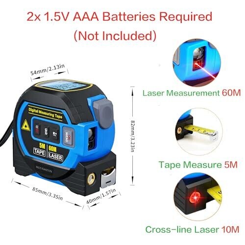 Qzichaowu The Almighty Ruler 3-In-1 Laser Tape Measure with LED Display, 60M