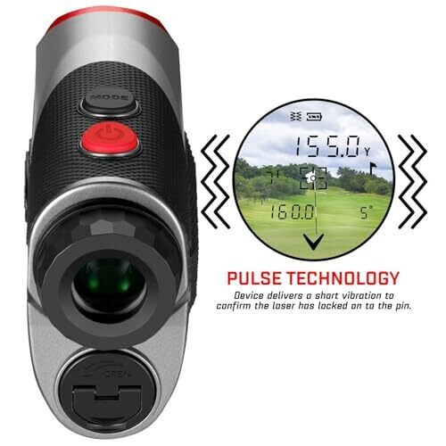 Precise laser rangefinder with 6x magnification for accurate distance measurement. Slope technology provides adjusted distances for elevation changes. Pin acquisition technology (PAT) locks onto the flagstick quickly. External slope switch for tournament-legal use. Water and fog-resistant design for all-weather performance.
