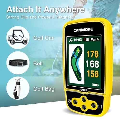 Canmore HG500 delivers a vibrant, easy-to-read color display with preloaded worldwide maps. It shows green and fairway shapes, hazard distances, and shot measurements, with glove-friendly controls, durable grip, magnetic clip, and no subscription fees for over 41,000 courses.