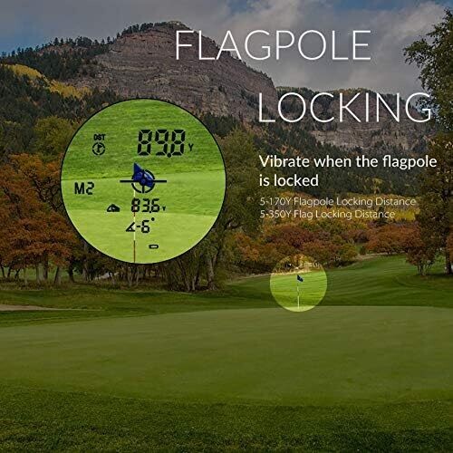 - Includes Slope Compensation to provide adjusted distance on uneven terrain, usable in golf mode (M2) with slope data displayed alongside linear distance.