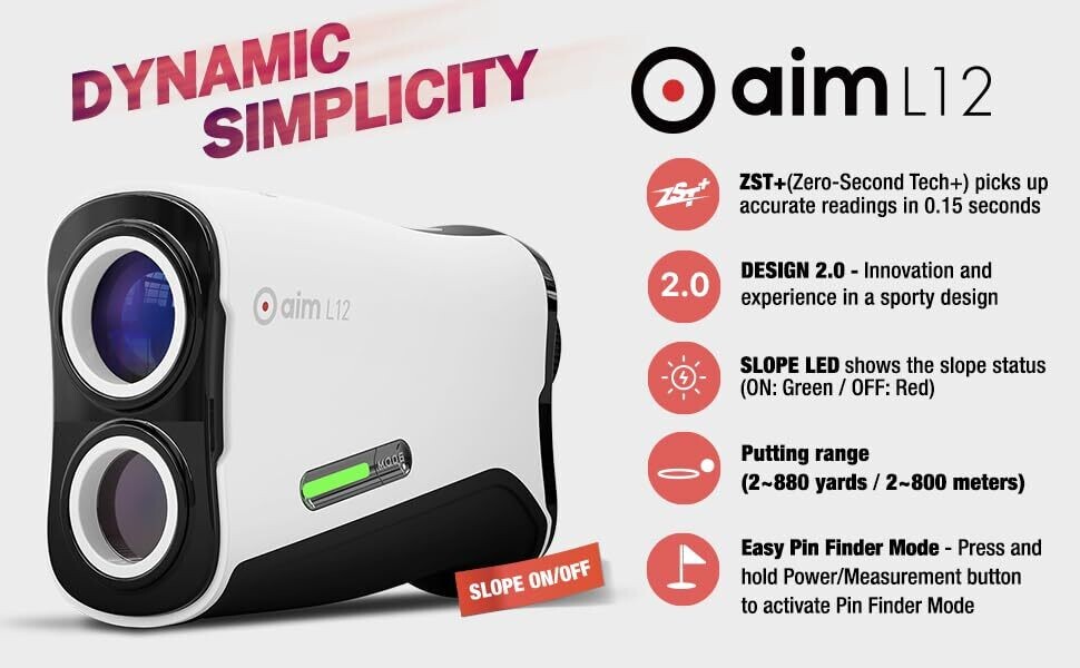 • GOLFBUDDY Aim L12 Laser Rangefinder combines dynamic simplicity with sporty, ergonomic lines for a premium feel in your hands.
