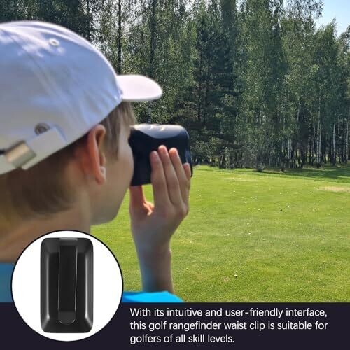 The product is a golf fixed clip suitable for golfers of any experience level. The metal clip fixes the range finder securely for long-lasting use. The clip keeps the rangefinder easily accessible for quick operation and information retrieval. This waist clip accessory is reusable and clip-on for a golf grip. It is designed to withstand various weather conditions and is waterproof.