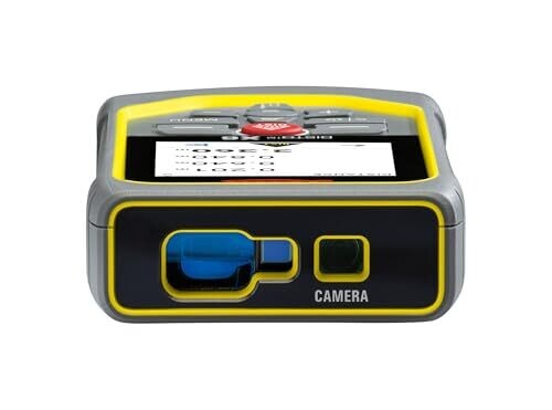 The device is designed for construction sites and is described as extremely robust, capable of surviving drop tests from 2 m height and protected against dust and jet water (IP65).