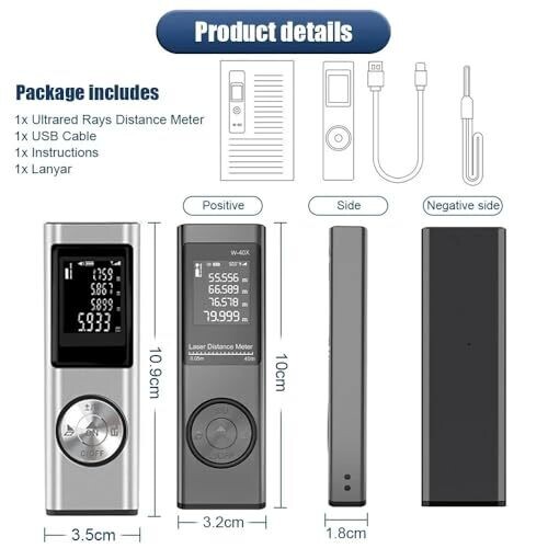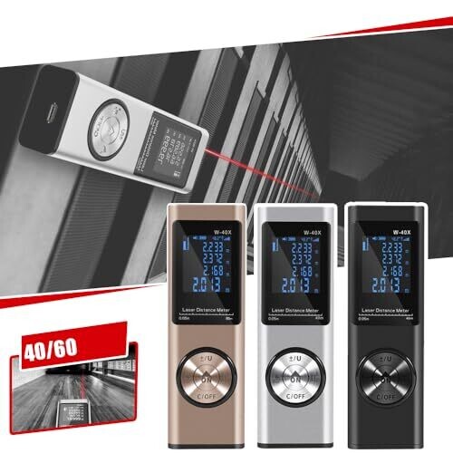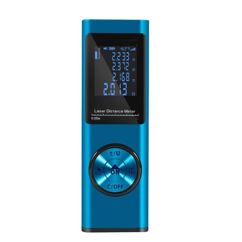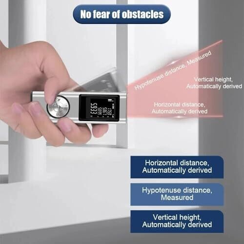 A compact laser distance meter with digital rangefinder up to 40 meters, providing precise measurements for construction projects. Includes angle measurement features, easy one-button operation, and quick, accurate distance readouts to improve layout and onsite calculations.