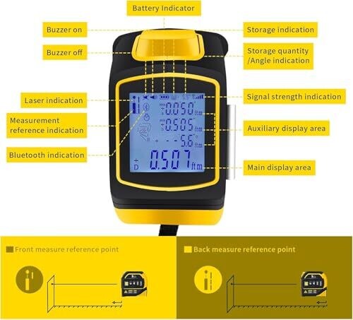 • Backlit LCD display with clear night vision ensures readability in dim job sites and bright outdoor conditions, making measurements quick and reliable any time of day.