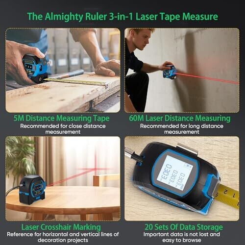 Qzichaowu The Almighty Ruler 3-In-1 Laser Tape Measure with LED Display, 60M