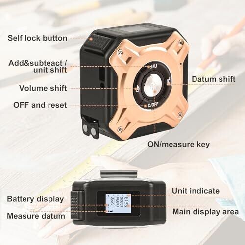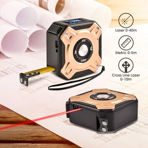 • 3-in-1 functionality combines a high-visibility infrared distance meter with a 16 ft measuring tape, enabling quick switching between laser measurements and quick tape measurements on-site.