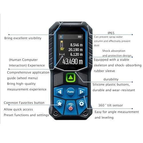 • Designed for versatility, this device blends rangefinding with color display and tape measure-style capabilities to streamline your workflow in any environment.