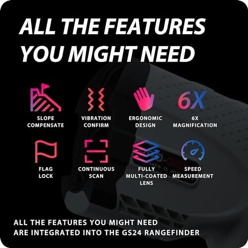 • Gogogo Sport Vpro GS24C Golf Range Finder with Pulse Vibration delivers precise distance measurements up to 1200 yards and a clear 6x magnified view.