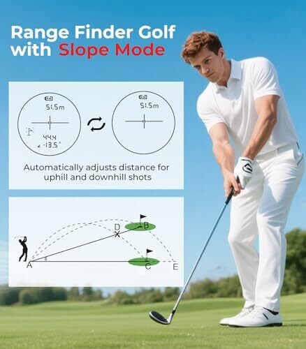 Golf Rangefinder with Magnetic - 1000 Yards Laser Range Finder with Slope Compensation & USB-C Rechargeable Battery for Golf offers slope-adjusted distances and flagpole locking feedback via vibration.