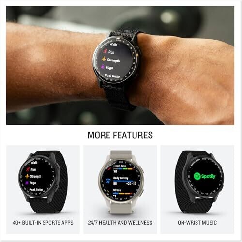 Garmin Pay contactless payments supported (with a compatible card); listen on the go by downloading songs and playlists from Spotify, Amazon Music or Deezer (subscription may be required).