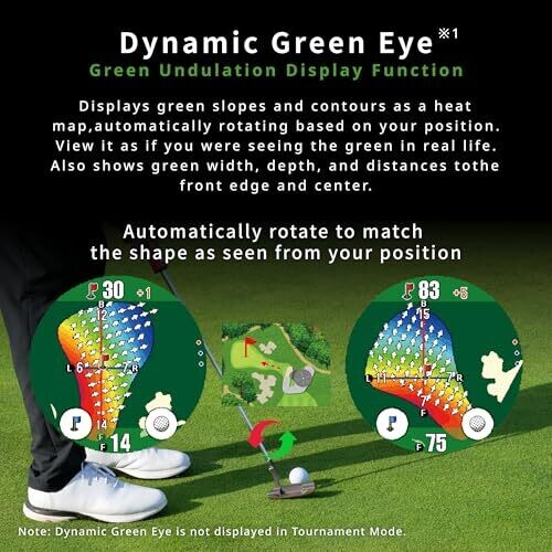 • Slope Direction cues provide intuitive guidance on green inclines, helping you plan your approach and putt with precision.