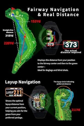 Shot Navi Exceeds Golf GPS Navigation Watch offers a 1.4-inch color touchscreen for easy navigation on course. Dynamic green mapping, slope direction cues, and temperature-compensated distances deliver precise yardages, auto swing measurements, and reliable performance across varying terrains.