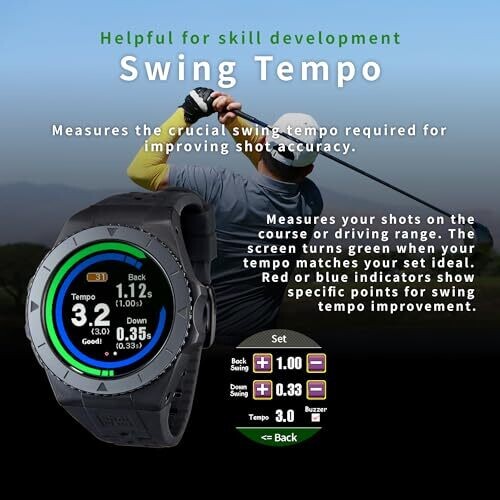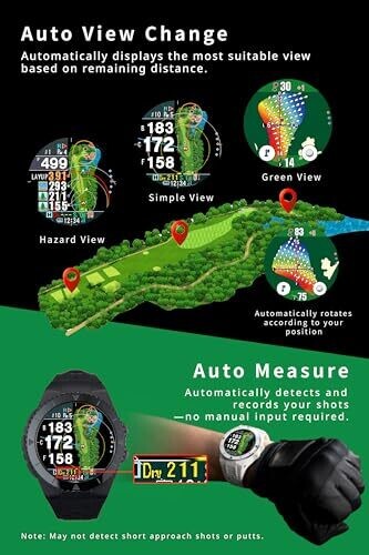 • Auto Measurement captures swing distances automatically, while elevation-aware calculations reflect true playing distances across varying terrain.
