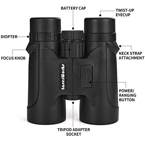 • Laserworks Compact Binoculars with Rangefinder for Hunting