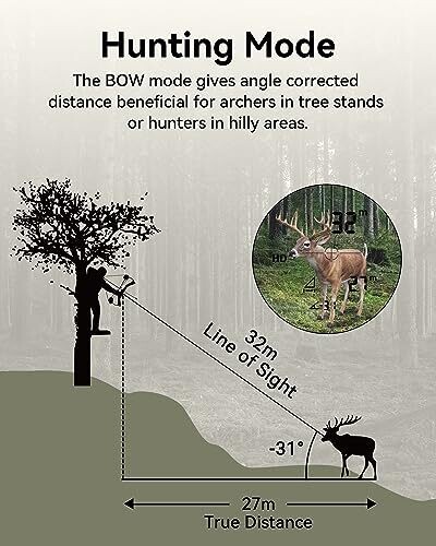 - Offers clear distance readings with angle compensation and horizontal distance display to help you make accurate shots and assessments.