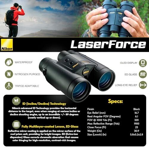 • Nikon Laserforce Rangefinder Binoculars — Bright, Clear Imaging In Weather