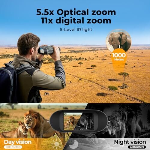 • Long-range observation with 5.5x optical zoom and 11x digital zoom, suitable for targets at extended distances.