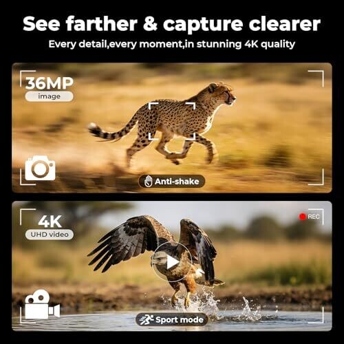 • Captures stunning 4K UHD video and 36MP photos with a high-sensitivity sensor and adjustable IR illumination for total darkness.