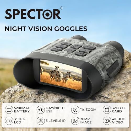 • Spector Night Vision Goggles – 4K Binoculars, 11X Zoom, 32Gb Card