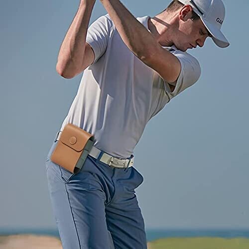 The design is slim and tailored to fit a golf rangefinder securely, with a compact form that provides convenient storage and access.