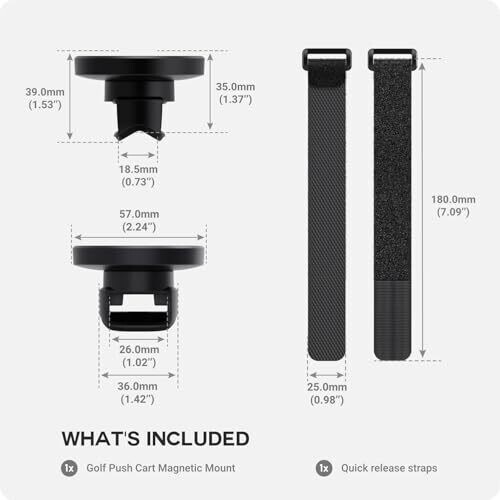 • Designed to securely attach to the push cart handle, this magnetic mount holds items such as rangefinders, smartphones with magnetic cases, towel clips, cigar holders, and head covers for quick access during your round.